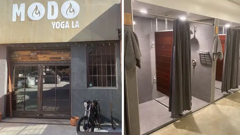 Modo Yoga LA – East doesn’t skimp on the details that make a visit seamless and luxurious. The studio boasts wheelchair-accessible entryways, spacious changing areas equipped with lockers, complimentary mats, and plush towels—essentials that let you focus purely on your flow.
